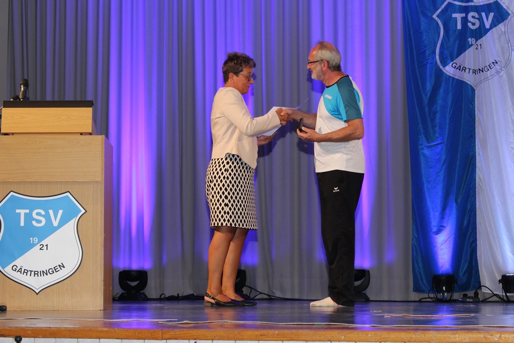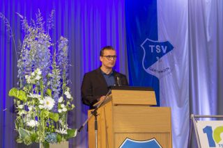 Mit knapp 1200 Mitgliedern ist er der größten Verein in Gärtringen. Dass der Verein trotz seiner 100 Jahre jung und vor allem weiblich ist, hob Bürgermeister Thomas Riesch in seiner Laudatio hervor und zückte dabei sein Mobiltelefon, um dies zugleich mit Zahlen aus der aktuellen TSV Rundschau online zu belegen. „Der TSV ist ein Verein mit einem starken Ehrenamt und hervorragender hauptamtlicher Struktur“ so Bürgermeister Riesch. Zum Abschluss überreichte er einen Jubiläumsscheck und versprach, dass die Gemeinde auch die kommenden 100 Jahre an der Seite des Vereins stehen wird. Auch der Sportkreisvorsitzende Ekkehard Fauth, der im Anschluss seine besten Wünsche überbrachte, kam nicht mit leeren Händen. Nach einem mitreißenden Auftritt der Abteilung Jazz- und Modern Dance „TanZeitLos“ des TSV erläuterte Michaela Netzer-Voit, STB Vizepräsidentin Sportarten, wie wichtig die soziale Komponente eines Sportvereins ist und diesen damit zu einem unverzichtbaren Teil unserer Zivilgesellschaft macht. Sie brachte als „Geburtstagsgeschenk“ unter anderem einen Gutschein für einen Zukunftsworkshop mit.