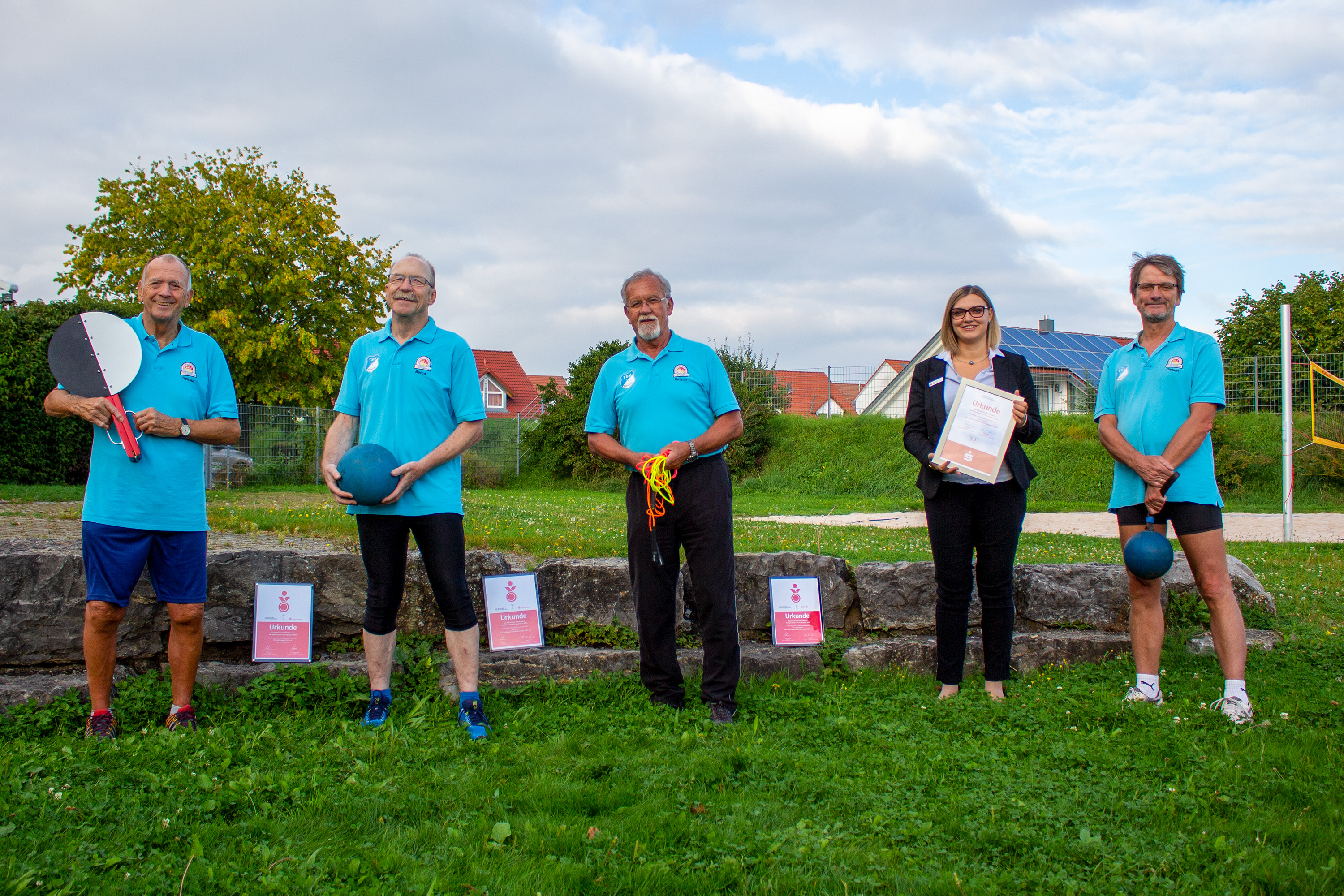 Zur Belohnung für das Engagement in einem für alle Beteiligten herausfordernden Jahr 2020 durfte sich das Sportabeichenprüferteam am vergangenen Donnerstag zum Saisonende des Jahres 2021 zum vierten Mal darüber freuen, für seine Bewerbung beim bundesweiten Sportabzeichen-Wettbewerb der Sparkassen-Finanzgruppe wie schon im Vorjahr von Alexandra Stäbler, Leiterin der Kreissparkassen-Filial-Centers Gärtringen, die mit einem Preisgeld von 1.000 Euro dotierte Urkunde überreicht zu bekommen.