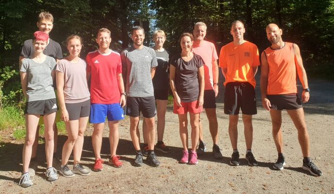 Eine weitere, erfolgreiche Sportwoche liegt hinter uns. Am Donnerstag waren mit 29 aktiv Teilnehmenden auch zahlreiche Urlaubsheimkehrer dabei, um ihre letzten, noch ausstehenden Disziplinen abzulegen. Aber auch beim Schwimmen konnten Dank der, für diese Jahreszeit sehr unüblich warmen Wassertemperaturen weitere 19 Schwimmer ihre Leistungen ablegen. Am Samstag traten 10 Läufer im Wald an, 7 von ihnen über die 3000 Meter und 3  über die 7,5 km Walking (s. Bild).