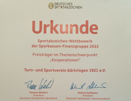 Das langjährige Engagement des schier unermüdlichen Prüferteams wurde bereits in den Jahren 2016, 2018, 2019 und 2021 mit der Auszeichnung der Sparkassen-Finanzgruppe beim deutschlandweiten Sportabzeichen-Wettbewerb gewürdigt. Erfreulicherweise waren wir auch im Jahr 2022 mit dem Themenschwerpunkt „Kooperationen“ unter den Preisträgern und erhielten somit zum 5. Mal diesen mit 1.000 € dotierten Preis.