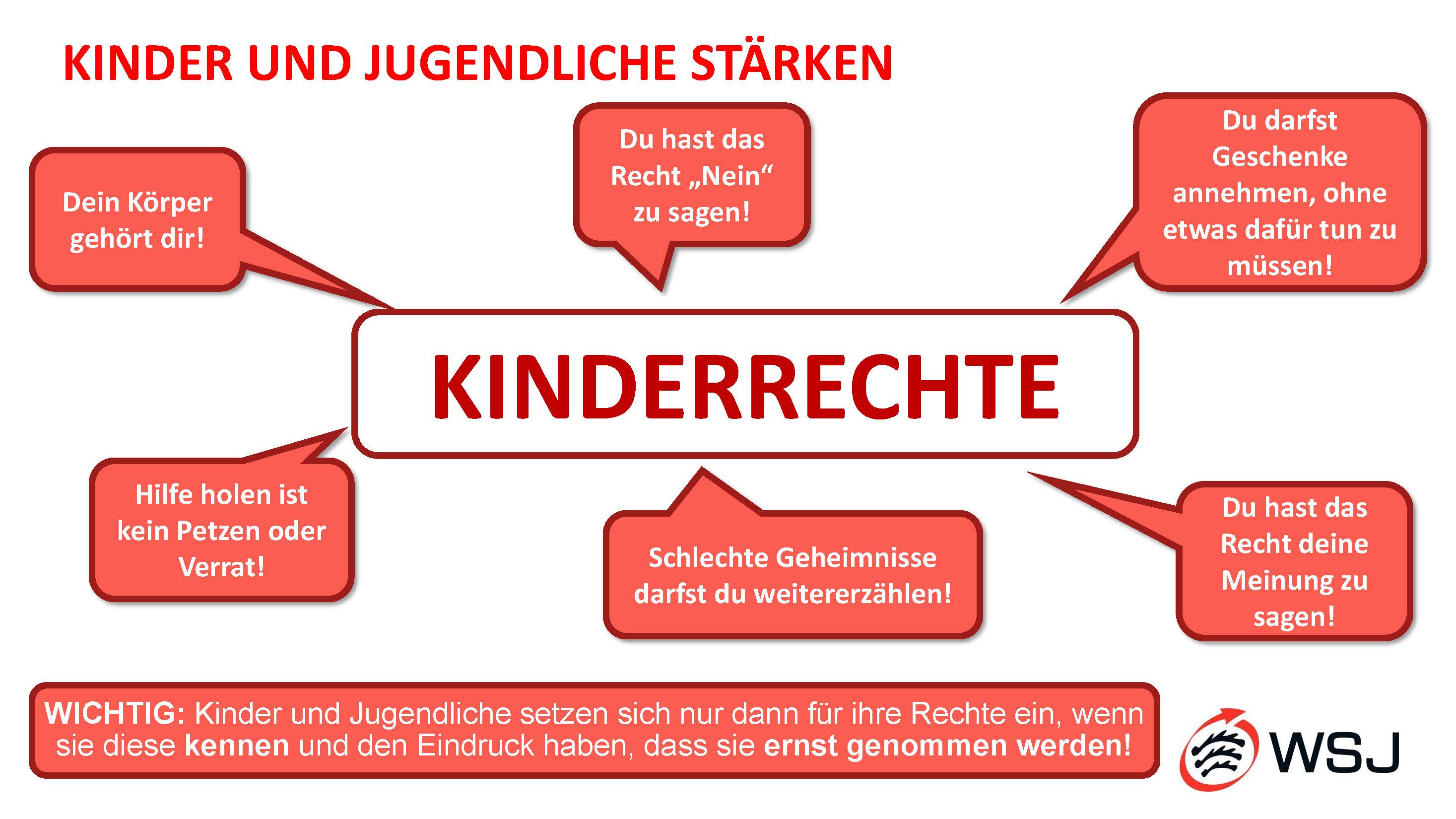 Alle Eltern klären ihre Kinder und Jugendlichen über die unten aufgeführten Kinderrechte auf. Unterstützend kann eine Anmeldung zur Teilnahme am Angebot „Kinder stärken“ im Rahmen des TSV Kursprogramms erfolgen.